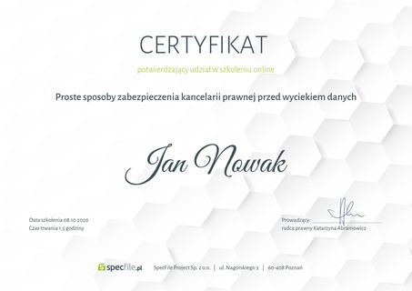 Imienny certyfikat udziału w szkoleniu z cyberbezpieczeństwa